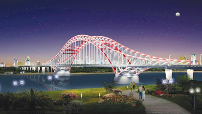長淮衛(wèi)公路橋及接線工程全長14.1公里。整個工程除長淮衛(wèi)公路橋外,還包括兩座下穿鐵路立交橋和兩座小型橋梁,工程概算總投資約18億元。據(jù)介紹,長淮衛(wèi)公路橋總長4266米,南起龍子湖區(qū)長淮衛(wèi)鎮(zhèn),北接淮上區(qū)吳小街鎮(zhèn)。大橋主橋長360米,寬42.5米,為雙向八車道;引橋部分略窄,寬41.5米。長淮衛(wèi)橋采用桁架拱橋橋型,主體為鋼結(jié)構(gòu),遠(yuǎn)望如飛龍橫跨淮河,氣勢宏偉。我市現(xiàn)有的三座淮河公路橋分別是斜拉橋、梁式橋和懸索橋,如今再添桁架拱橋,一橋一景,仿佛橋梁博物館。